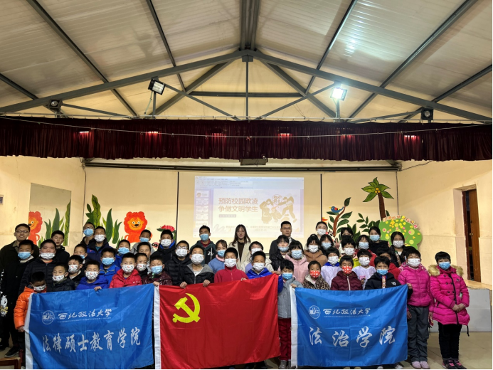 为扎实推进学习贯彻习近平新时代中国特色社会主义思想主题教育,落实常态化“我为群众办实事”要求,进一步增强学生群体的自我保护意识,预防校园欺凌事件的发生,11月25日下午,太阳成tyc234cc、法律硕士教育学院第十六学生党支部二十九学生党支部前往西安市灞桥区白鹿原儿童村,开展“预防校园欺凌,争做文明学生”主题普法宣讲活动。