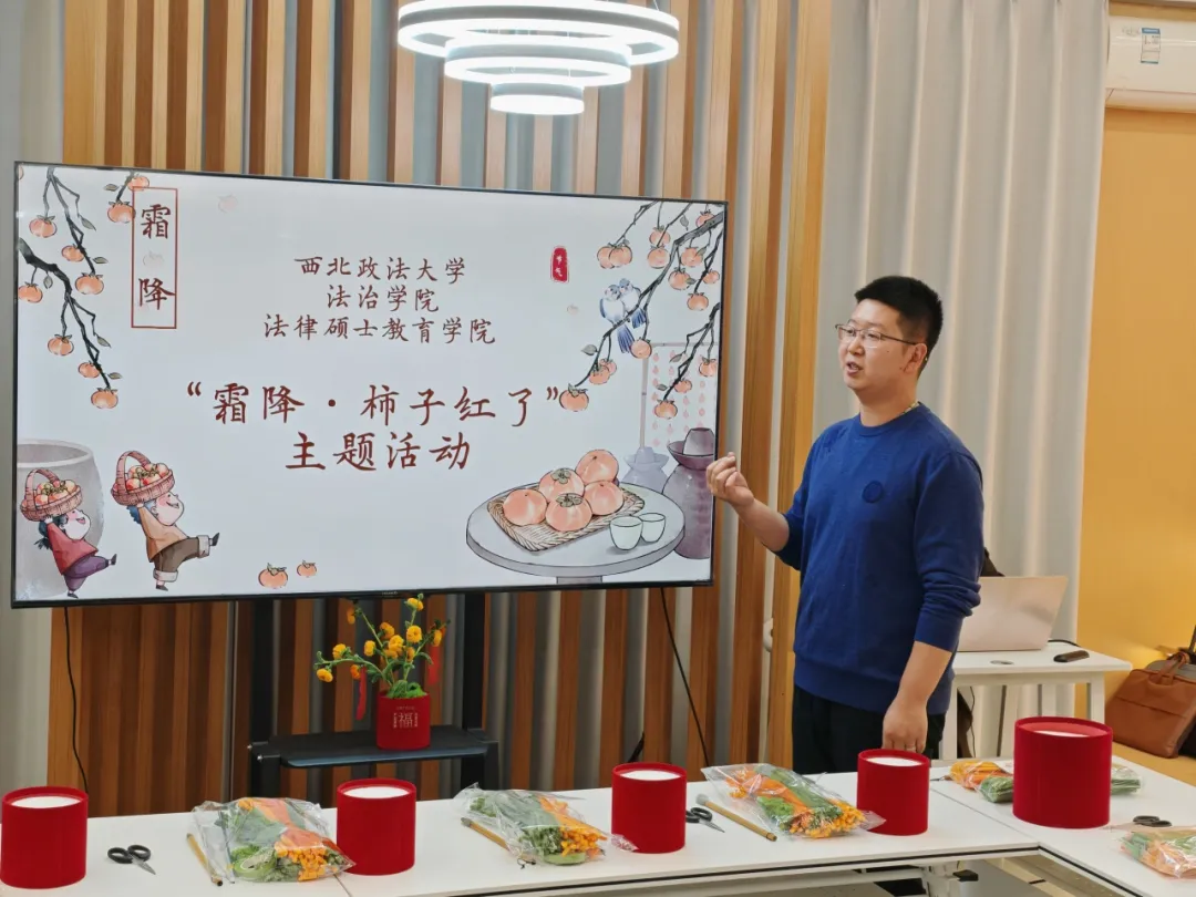 10月23日下午,我院在雁塔校区青衿驿站举办“霜降·柿子红了”主题活动,本次活动由西安艺舍美学馆晓明老师主讲。