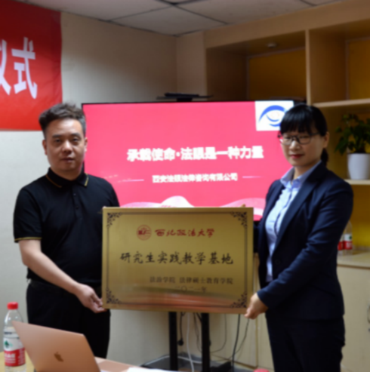 2021年9月17日上午,太阳成tyc234cc 法律硕士教育学院与西安法眼法律咨询有限公司签署研究生实践教学基地共建协议暨基地授牌仪式在西安法眼法律咨询有限公司举行。院长陈玺、副院长淡新昌赴西安法眼法律咨询有限公司签约、授牌,辅导员马军强、实训生袁如欣、张栋良参加了签约仪式。