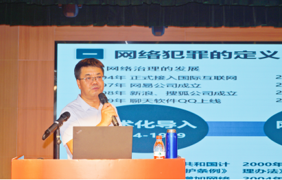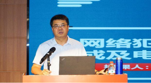 薛建国主任从网络犯罪的定义出发,对网络犯罪的发展及特点进行了阐述,从狭义说、广义说以及相对说三个角度定义网络犯罪的概念。介绍了现阶段网络犯罪面临的新形势。当前已形成网络犯罪系统性、跨国跨境的新生态,网络犯罪集团化链条的新特征,分享了其在工作中办理的包括电信诈骗、网络暴力在内的多个网络犯罪的真实案例。技术对抗是当前打击网络犯罪任务的工作重点。薛主任还以网络诈骗为例,详细介绍了包括以“多卡宝”为代表的技术支持和以“猫池”“打码平台”为代表的物料供应等犯罪技术,并举例说明电信网络诈骗的常见形式。