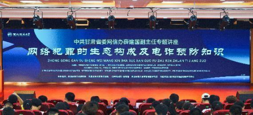 第一个阶段,首先由中共甘肃省委网信办副主任薛建国针对网络犯罪的生态构成及电信诈骗方面的知识进行专题讲授。