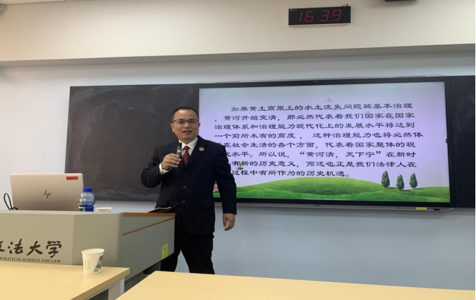 作为小结,王永亮检察官提出了一个问题供同学们共同思考,“黄河清,天下宁”是客观的规律还是古人的迷信?王永亮检察官认为,随着“三北防护林体系”等前所未有的大规模地给自然“还账”等大型环保工程的发展,将推动黄土高原的水土流失问题得到治理。如果随着水土流失得到控制,黄河水又开始有了变清的趋势,那必然代表着我国在国家治理体系和治理能力现代化上的发展水平将达到一个前所未有的高度,这种治理能力也将辐射到社会的方方面面,惠及千家万户,因此,“黄河清,天下宁”在新时代有了新的现实意义。
