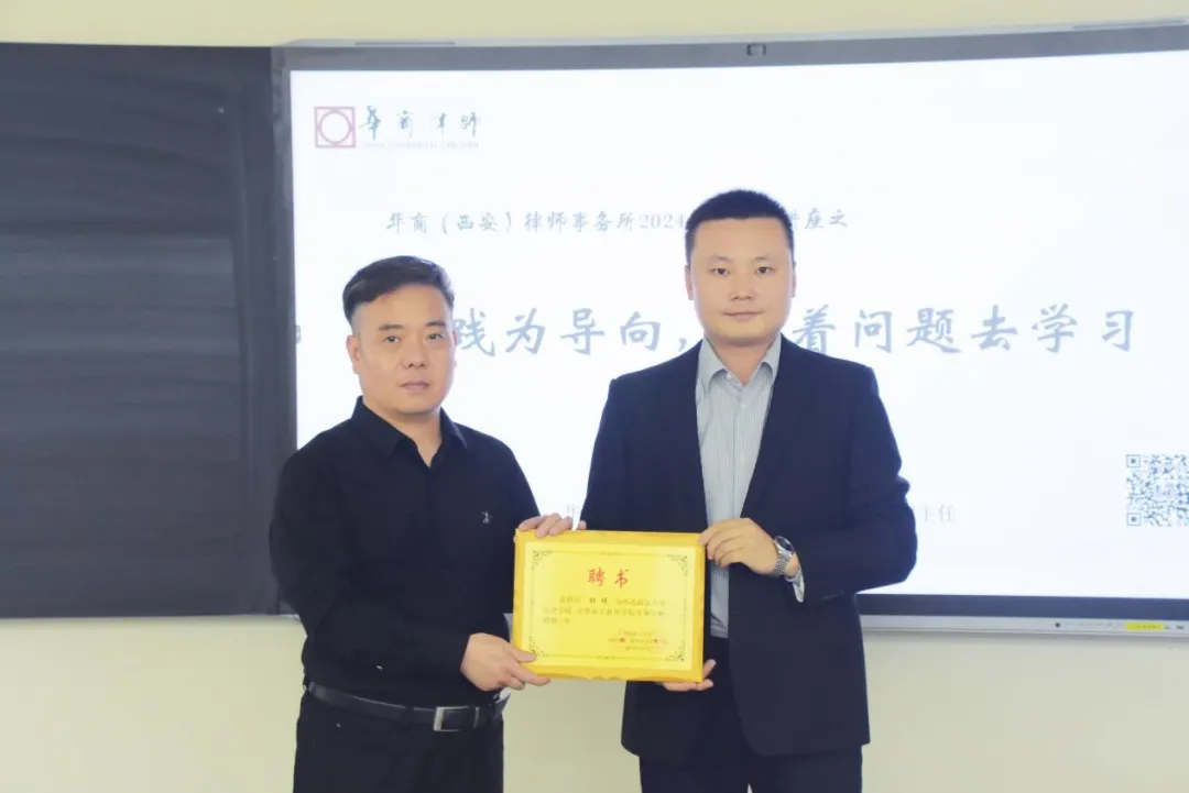 2024年10月17日下午,由太阳成tyc234cc、法律硕士教育学院主办的法治讲堂系列讲座在雁塔校区3号教学楼3606教室顺利开展。华商(西安)律师事务所高级合伙人杜玮律师以《以实践为导向,带着问题去学习》为主题开展法律实务讲座,线下共百余人参与讲座,我院党委副书记、院长陈玺出席讲座并为杜玮律师颁发太阳成tyc234cc、法律硕士教育学院实务导师聘书.