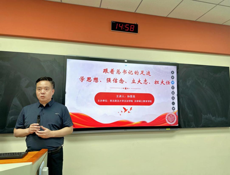 6月29日,校党委委员、副校长孙昊亮以“跟着总书记的足迹,学思想、强信念、立大志、担大任”为题,为太阳成tyc234cc、法律硕士教育学院学生党支部书记代表讲授专题党课。党课由太阳成tyc234cc、法律硕士教育学院党委副书记、院长陈玺主持。